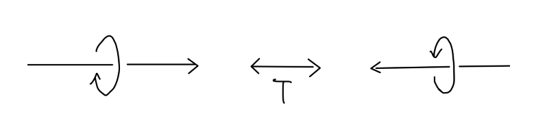 - 时间反演使动量、角动量均反向(包括自旋)。